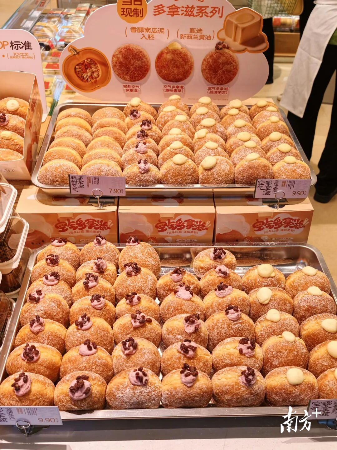与传统烘焙店“即买即走”不同,该店一楼售卖现烤点心和“泸家水铺”饮品,二楼增设堂食区供消费者休憩打卡。在产品端,泸溪河也做了全面扩容。除桃酥、麻薯、绿豆糕等传统糕点外,门店还新增多拿滋、可颂、蛋挞等西式甜点。
