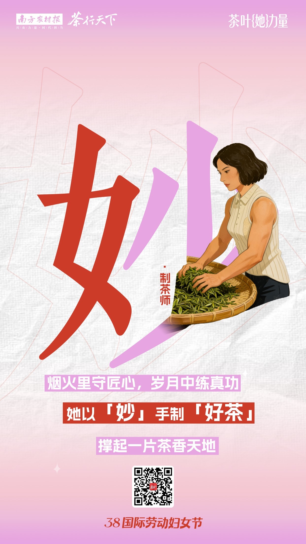 女,是妙。在传统制茶流程中,揉捻需要力量,男性通常被视为这项工作的最佳人选。然而女性,同样有力量。于是,行业里也不乏苦心钻研的女制茶师,她们在反复打磨中精进技艺,以独特的匠心,为传统制茶技艺注入温柔力量,用妙手制好茶,撑起了一片茶香天地。